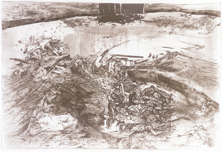 > Nach der Ankunft < Kohlezeichnung, 85 x 115 cm, 1981