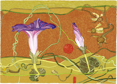 > Passionsblume II < Zeichnung, Aquarell, Goldfarben, 18 x 25 cm, 2009