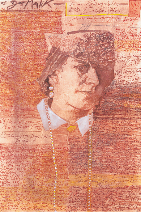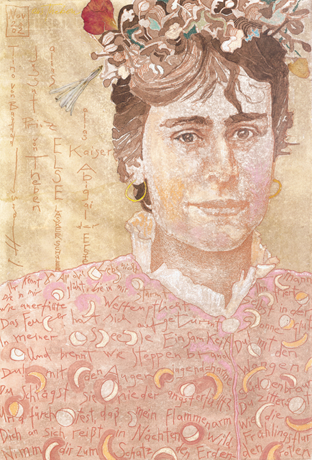> Else Lasker-Schüler < Mischtechnik, 57 x 76 cm, 2003